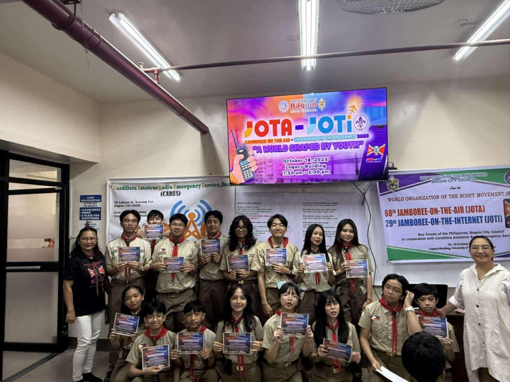 Boy Scout representatives from the Science High School Department (UBSHS) of the University of Baguio proudly participated in the 68th Jamboree-on-the-Air (JOTA) and the 29th Jamboree-on-the-Internet (JOTI), held on October 18, 2025. This global Scouting event, which connected thousands of Scouts from all over the world, was organized by the World Organization of the Scout Movement (WOSM), with the University of Baguio High School Department acting as host. The event was made possible with the support of the Boy Scouts of the Philippines (BSP) Baguio City Council, DX2CAR-CARES, and Dr. Violeta F. Apiles, who played a key role in facilitating the occasion.